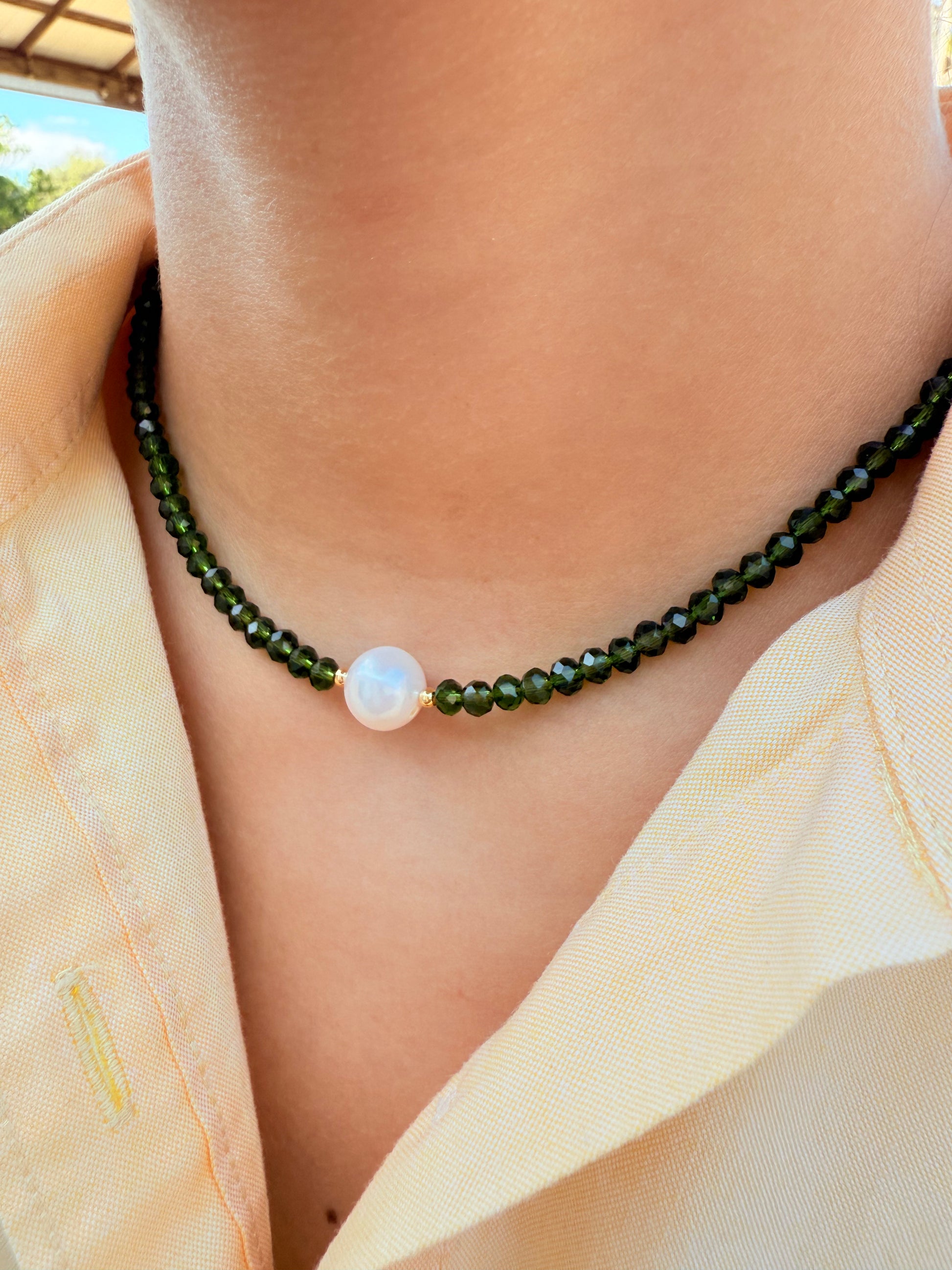Gargantillas en cristales facetados y perlas cultivadas