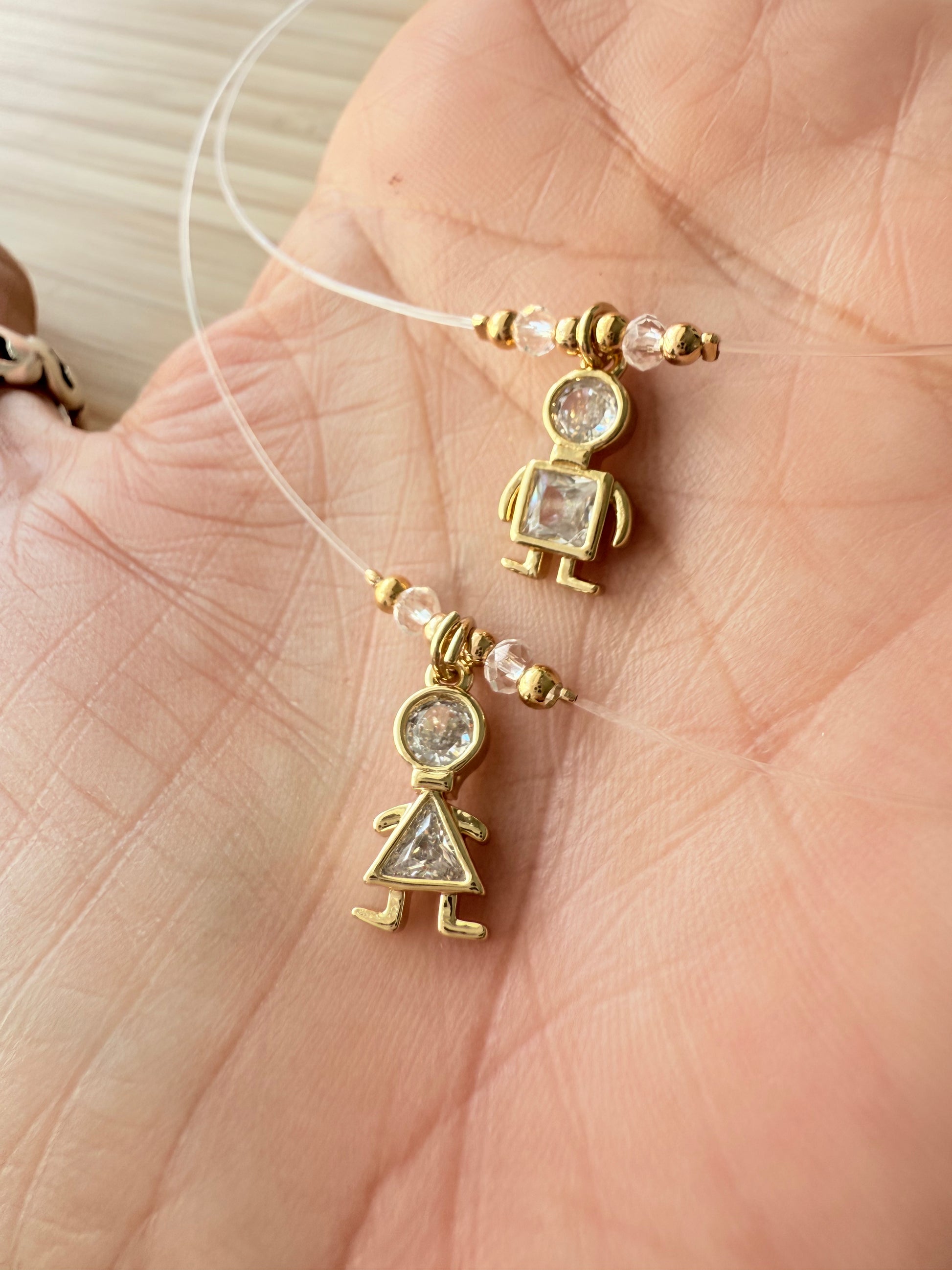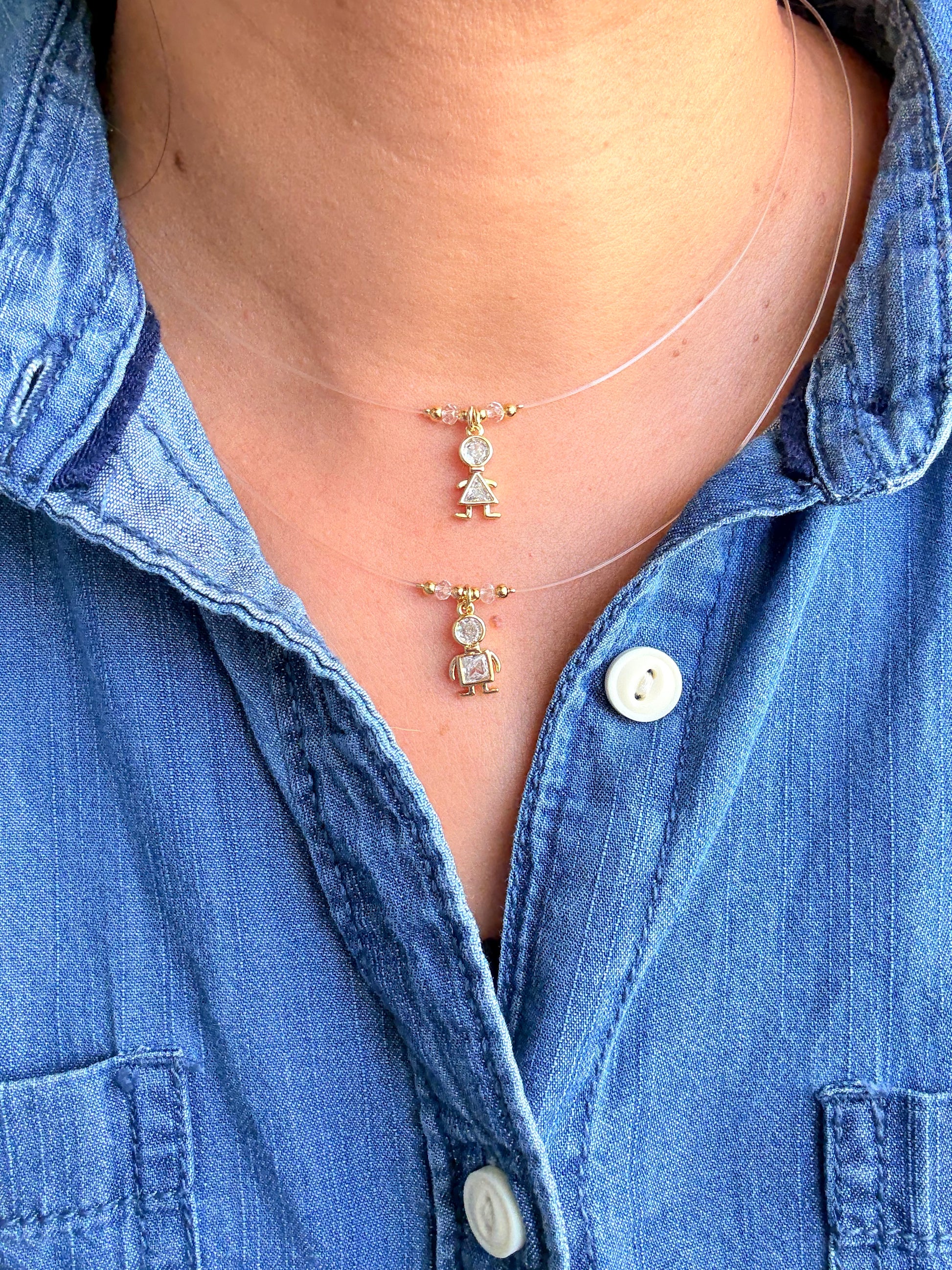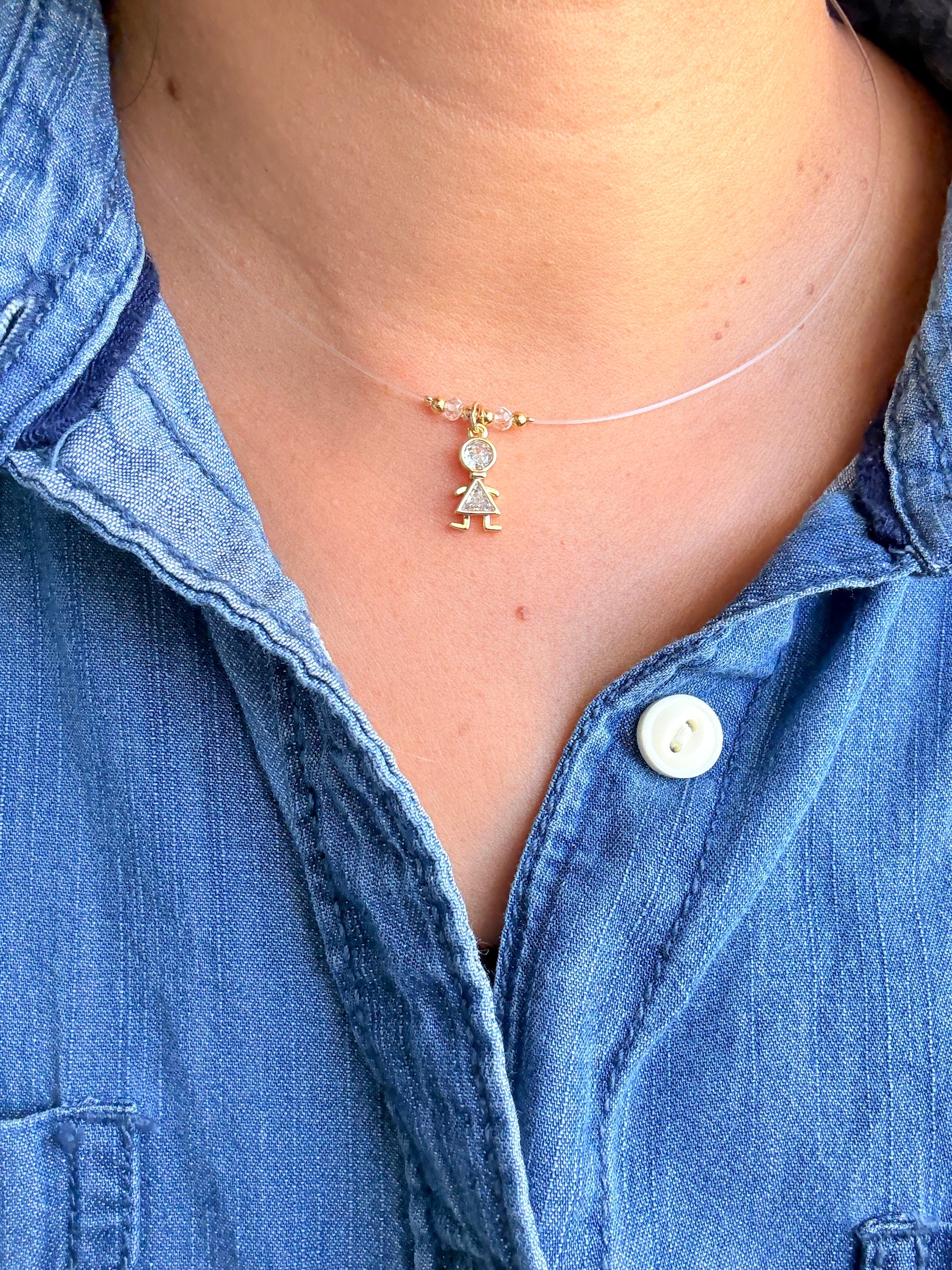 Gargantilla en hilo de nylon con dijes de cristal y baño de oro