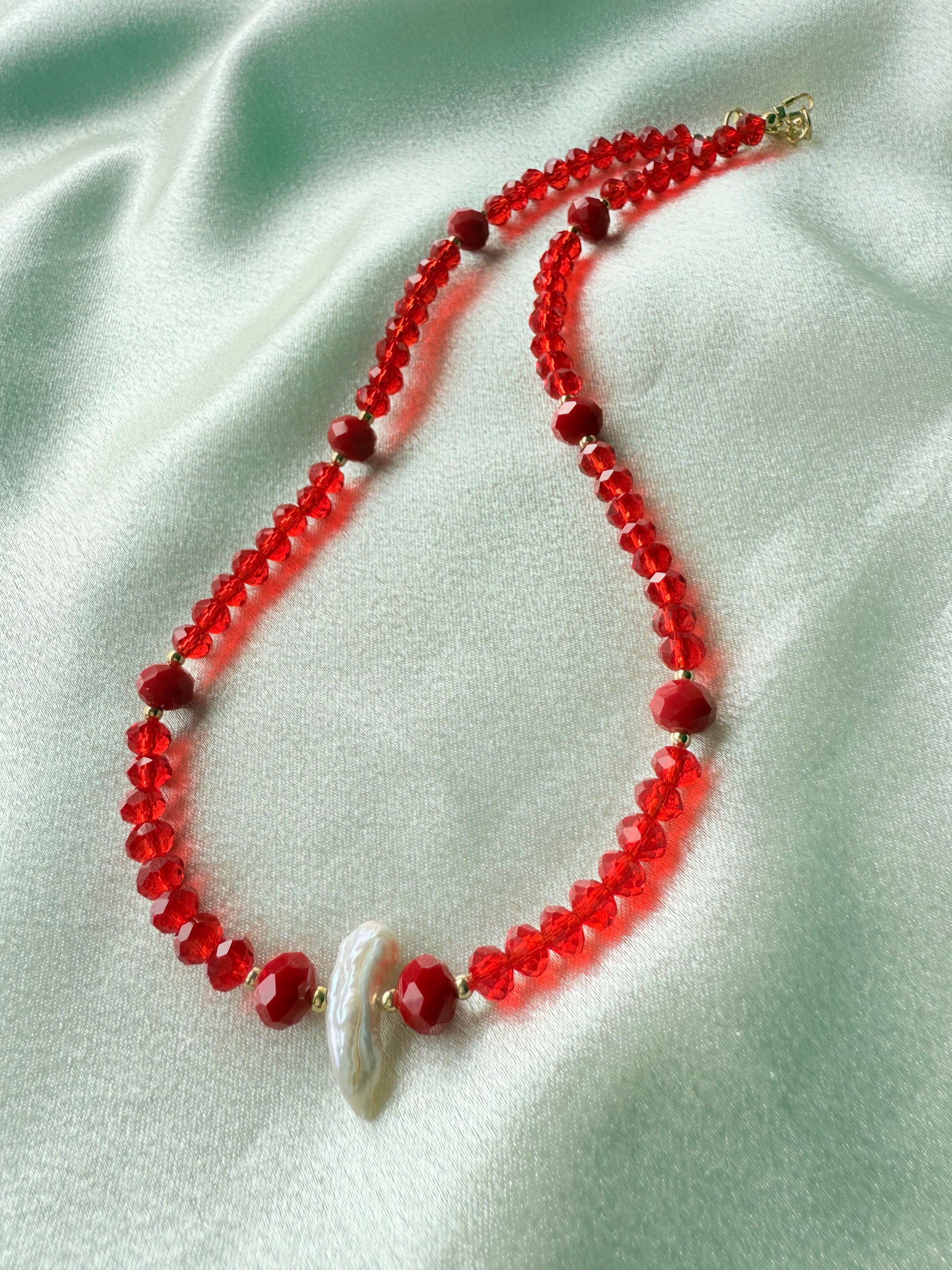 Gargantilla con cristales 6 y 8mm y perla cultivada al centro