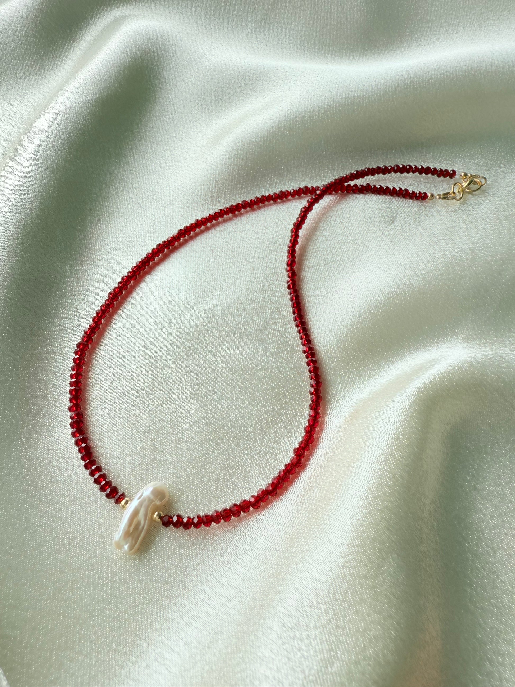 Gargantilla con cristales facetados 3mm y perla cultivada