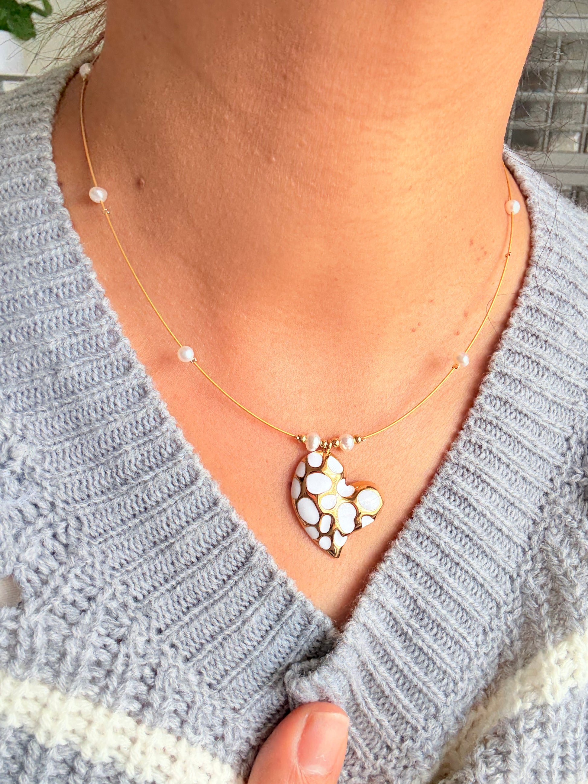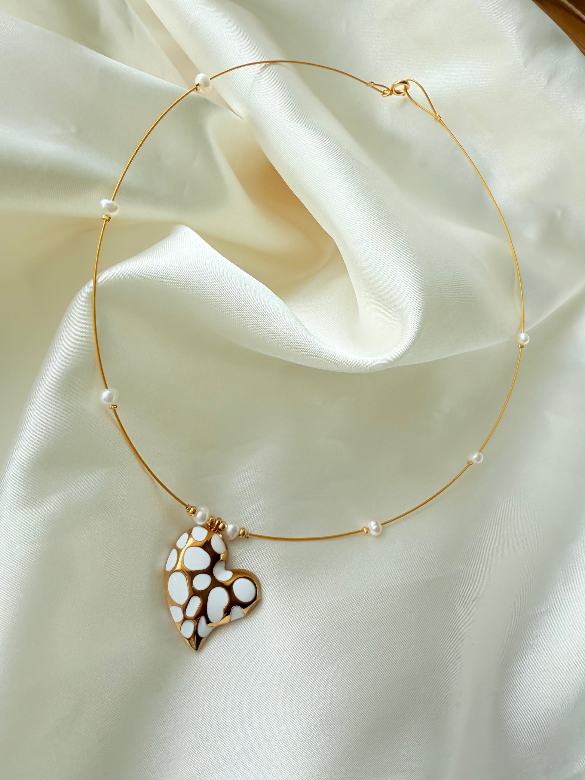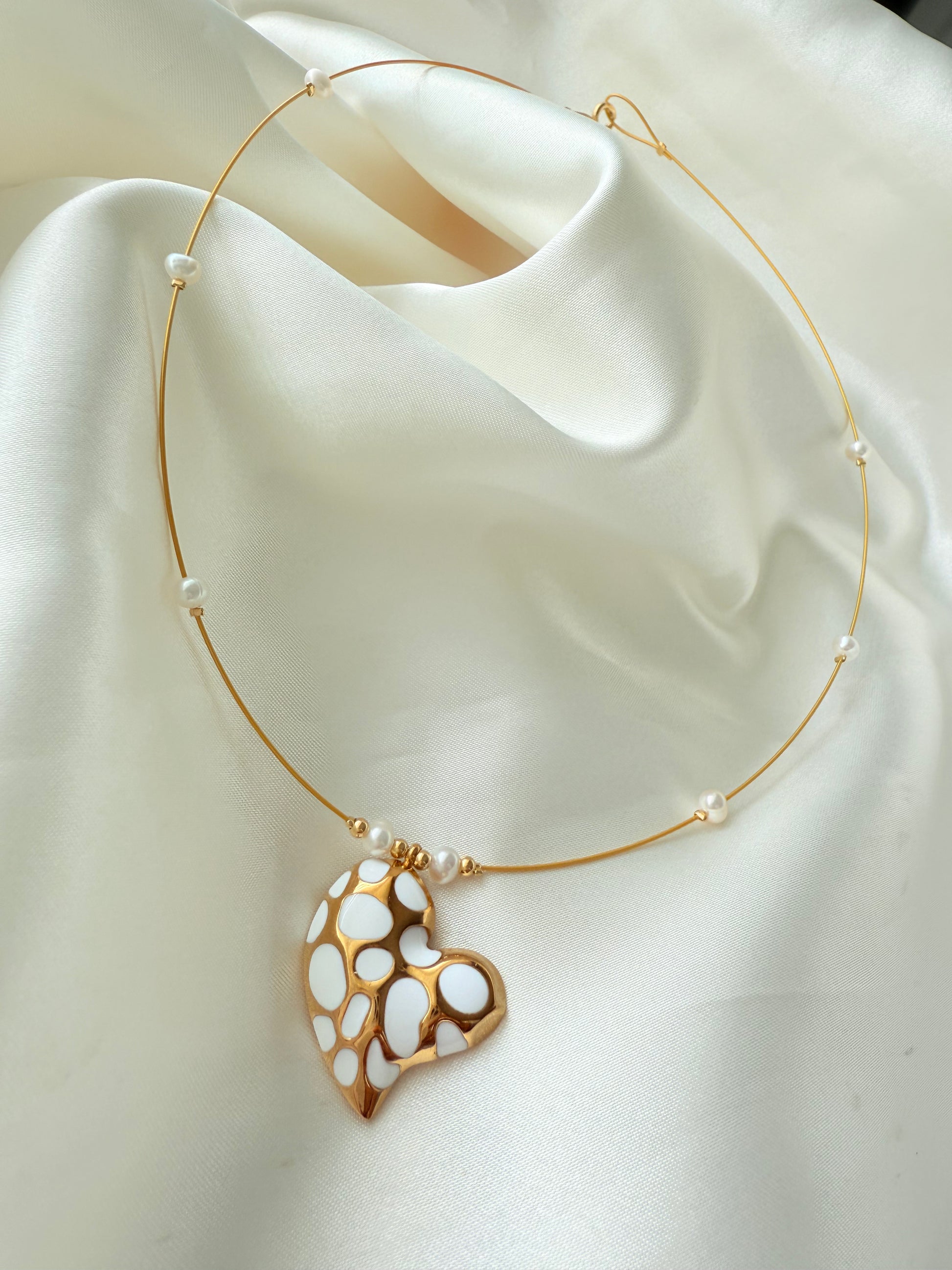 Gargantilla en alambre de acero con perlas cultivadas