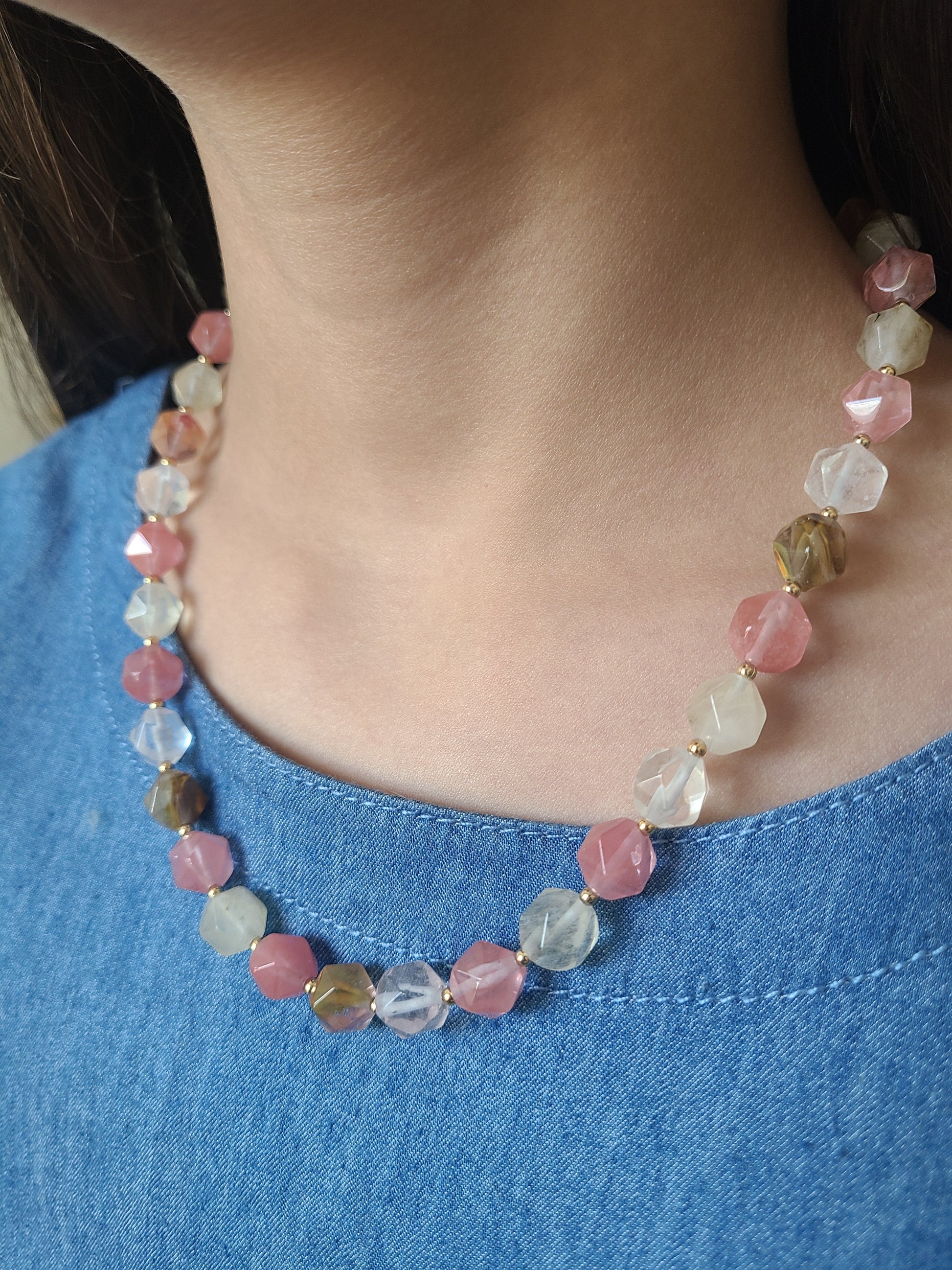 Gargantilla de piedras facetadas water melon.