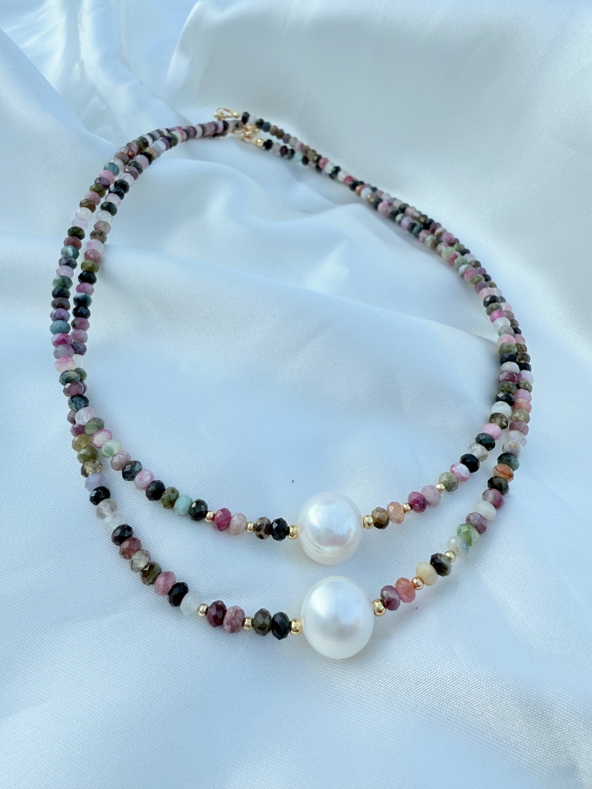 Gargantillas con piedras semipreciosas facetadas 4mm y perla cultivada
