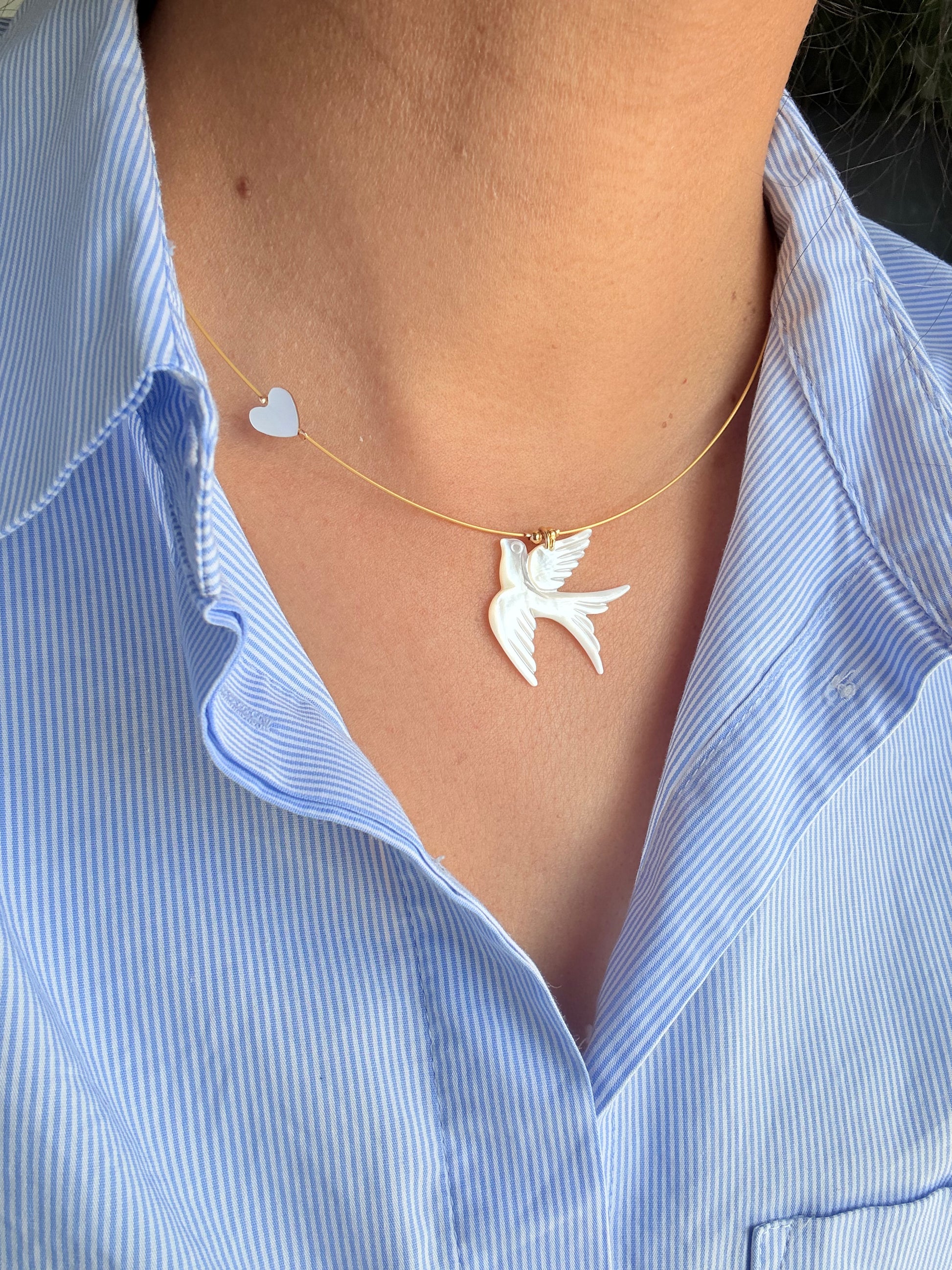 Gargantilla en acero con dijes en nácar, balines y cierre con baño de oro