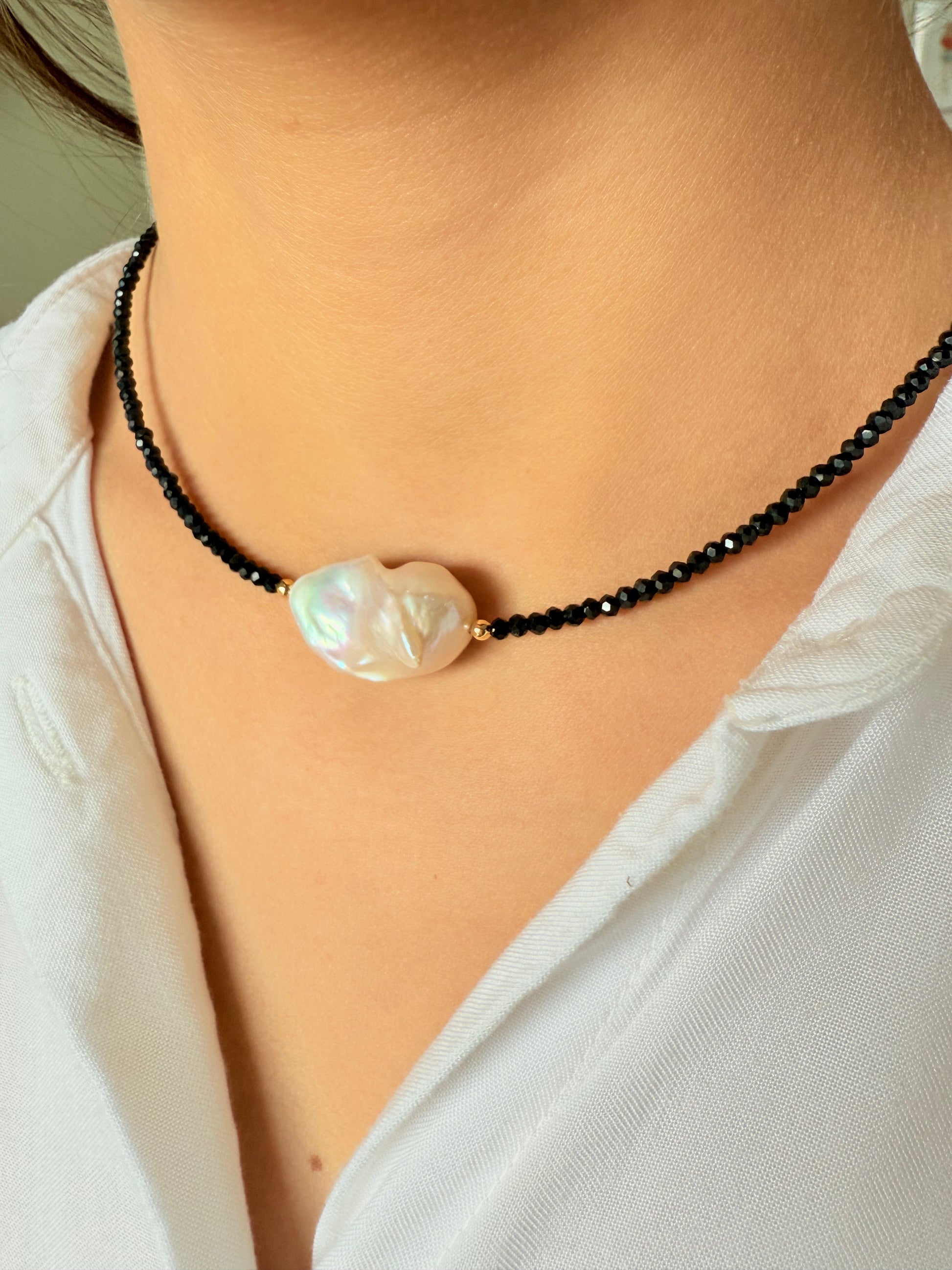 Cristales facetados y perla barroca