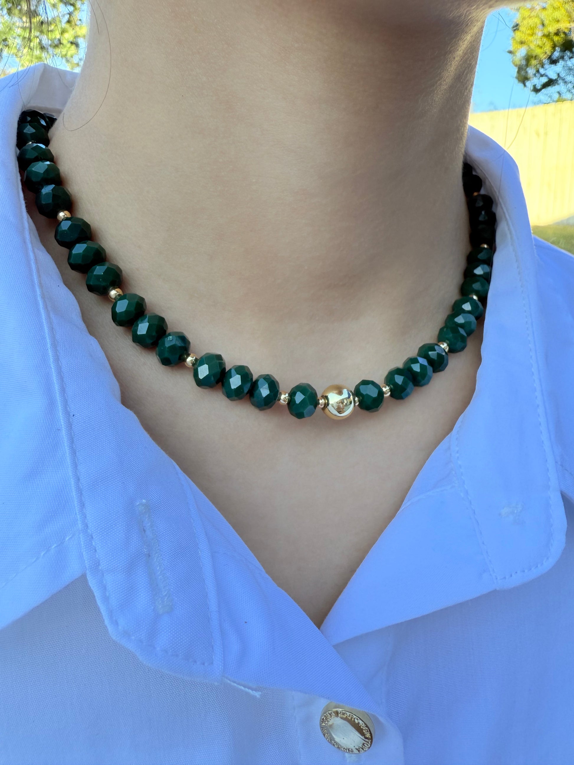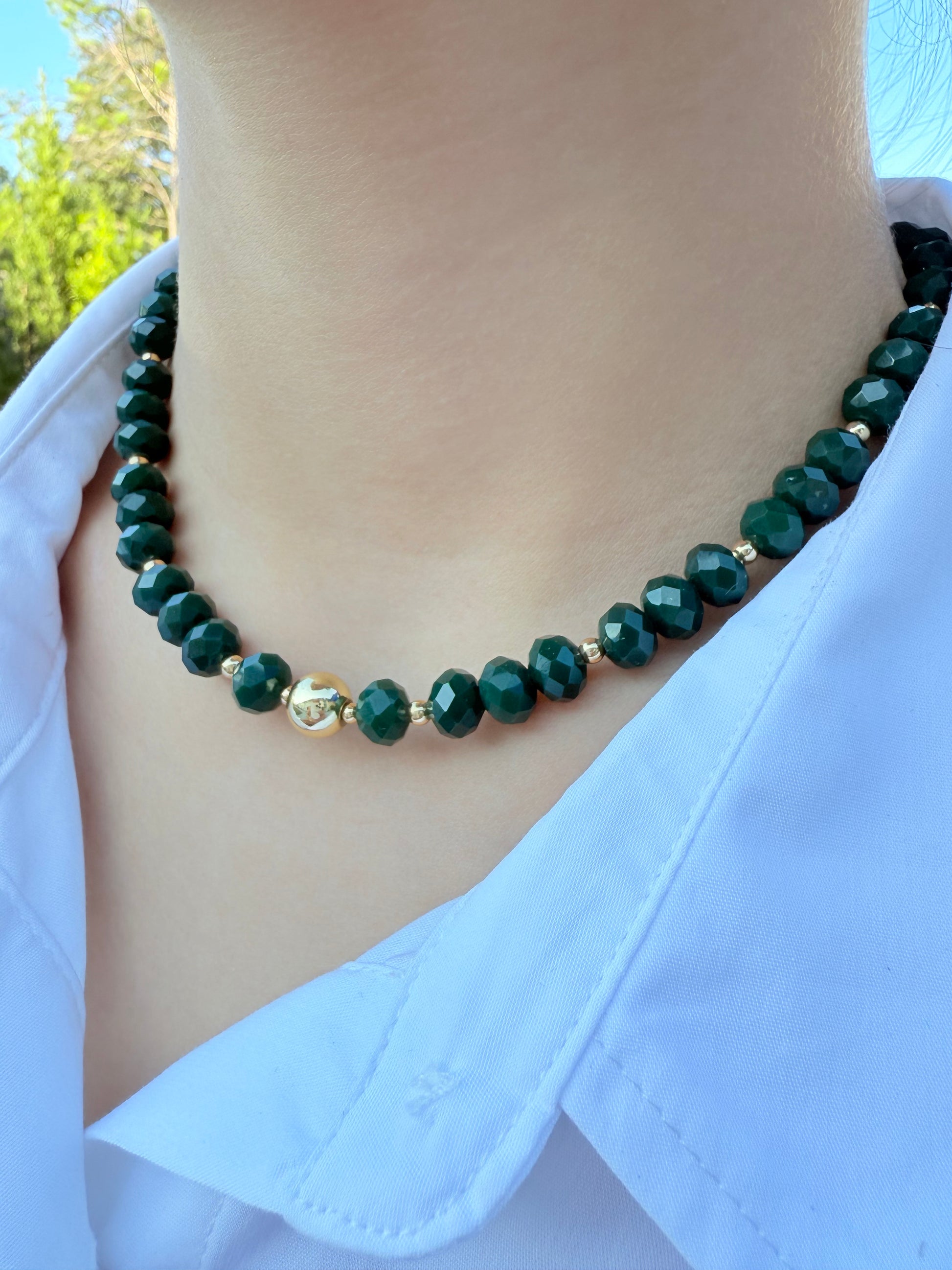 Gargantilla con cristales facetados 8mm y balines con baño de oro