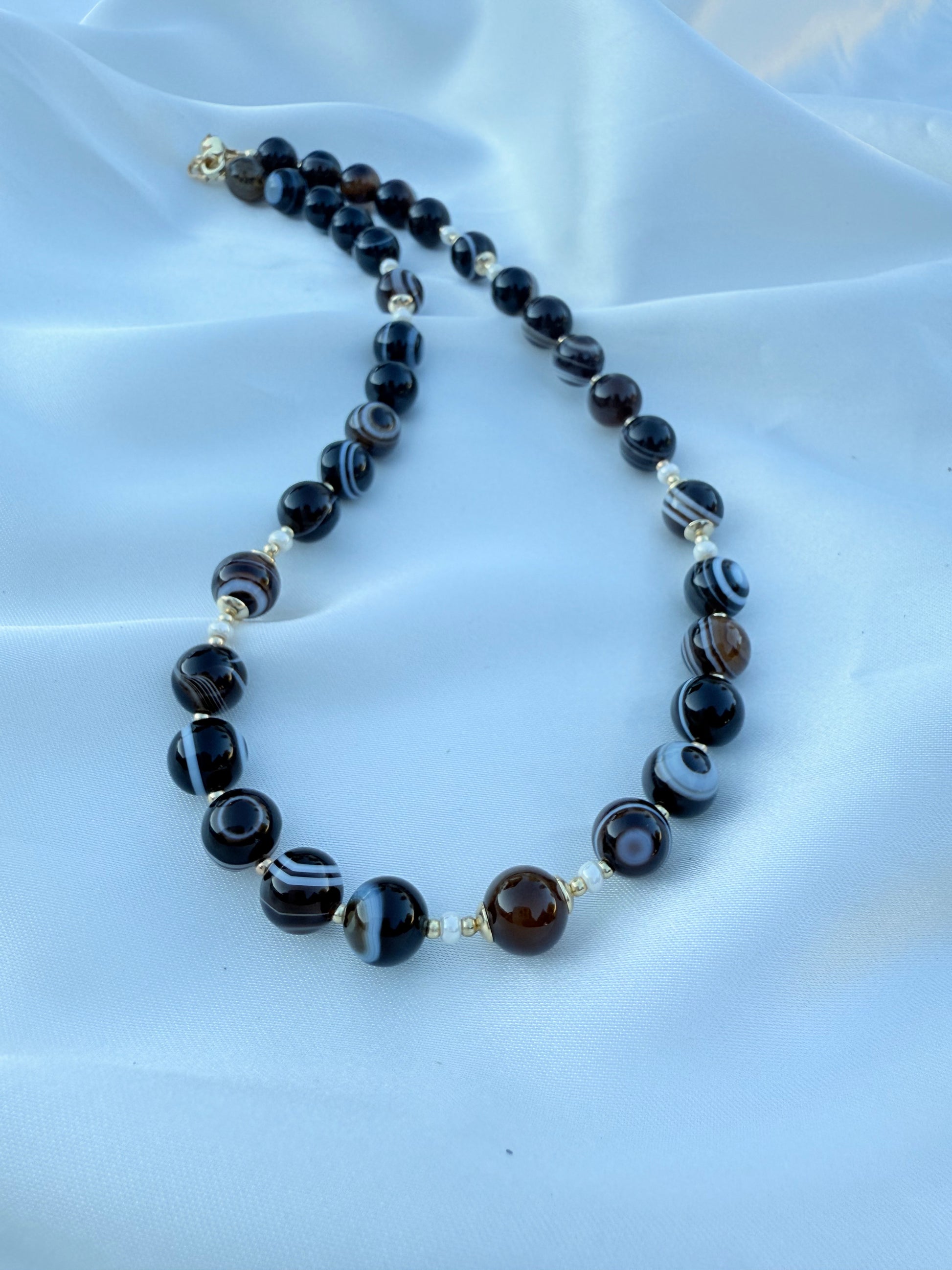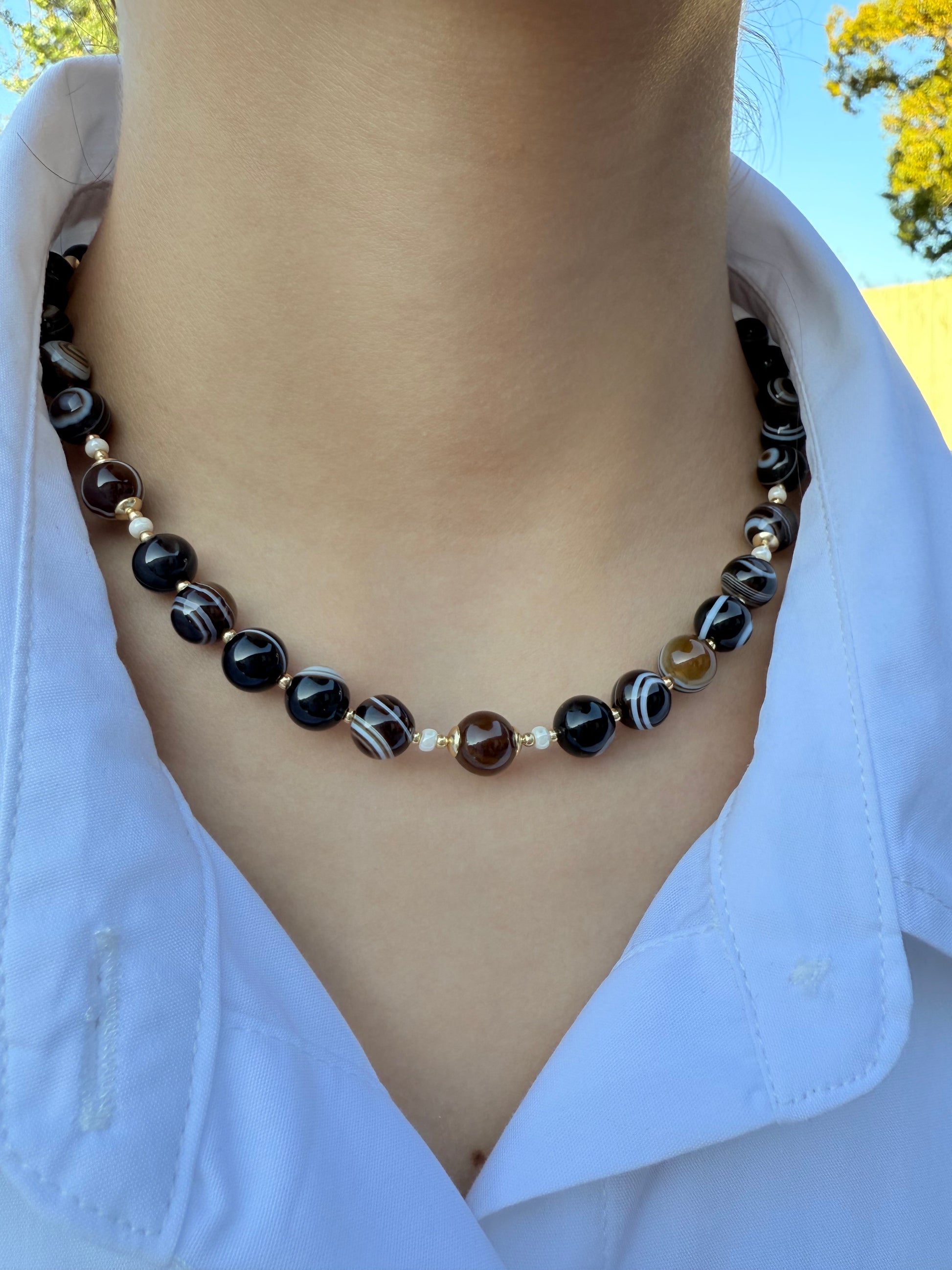 Gargantillas de ágatas, mostasillas y balines con baño de oro