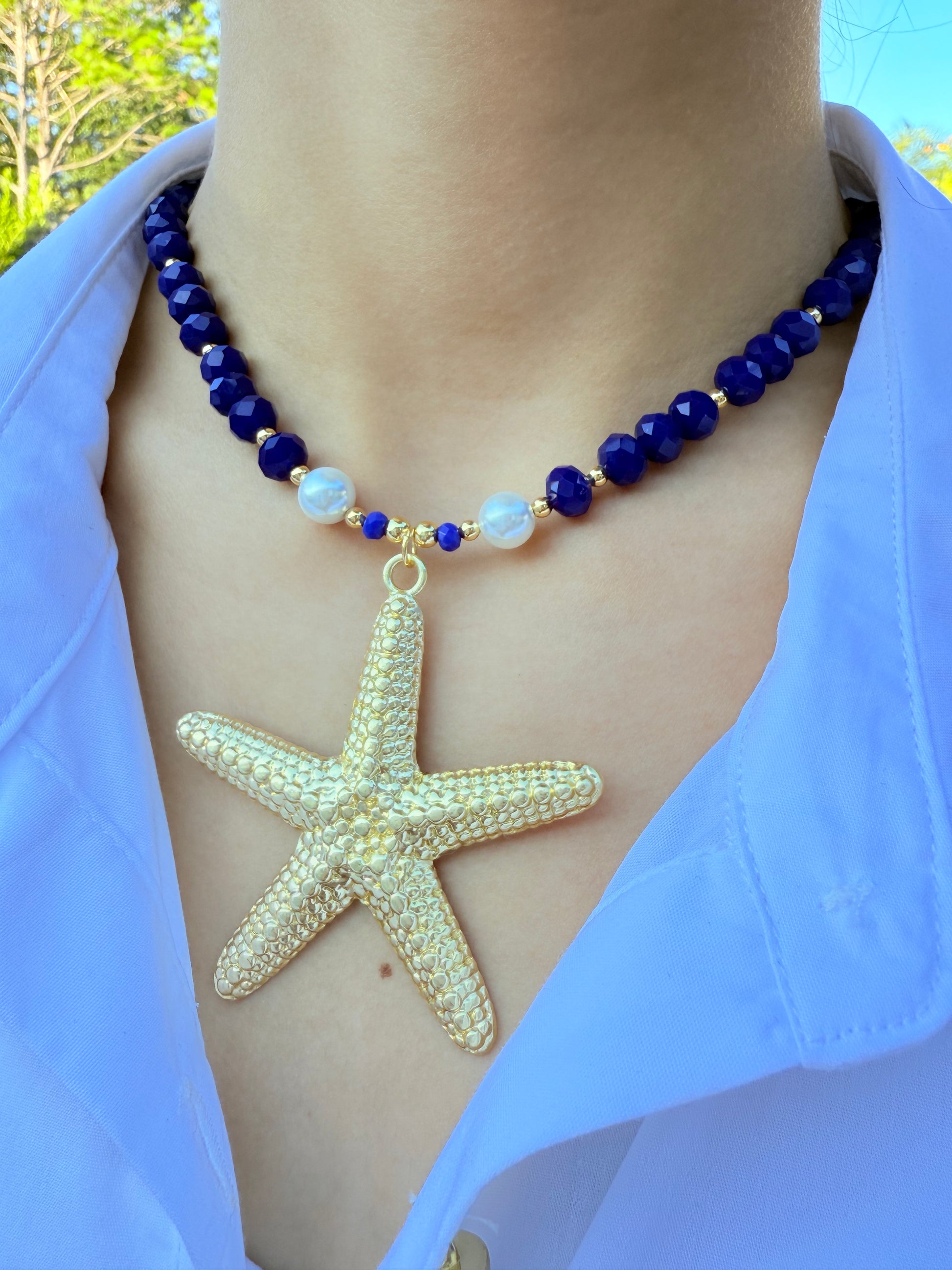 Cristales facetados 8mm, perlas de concha nácar y dije con baño d oro
