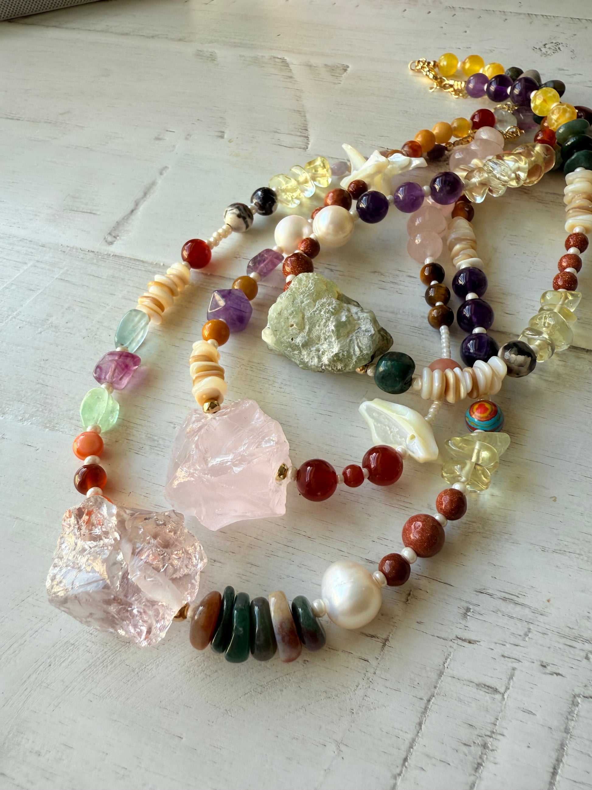 Collares con piedras semipreciosas Amazonita, amatista, cuarzo rosa, citrinas, ojo de tigre, ágatas, fluorite, perlas, nacar, venturina, y más