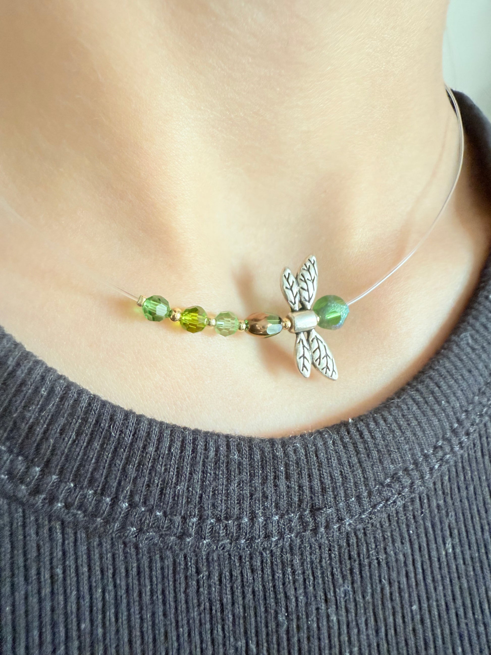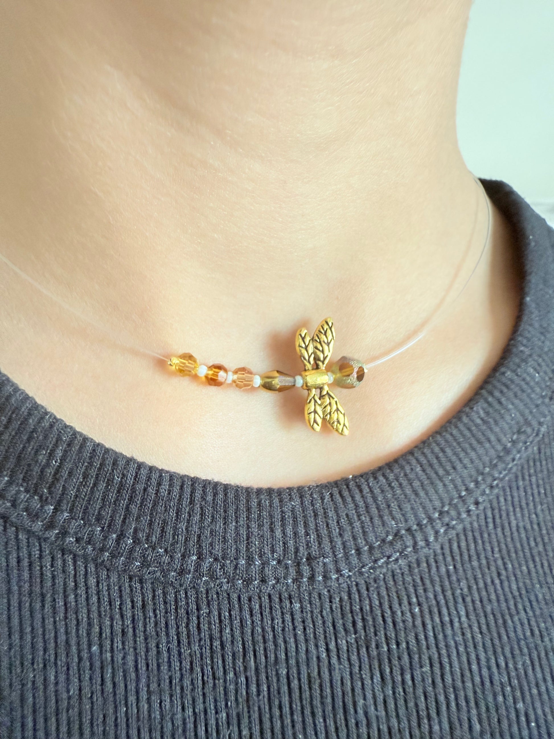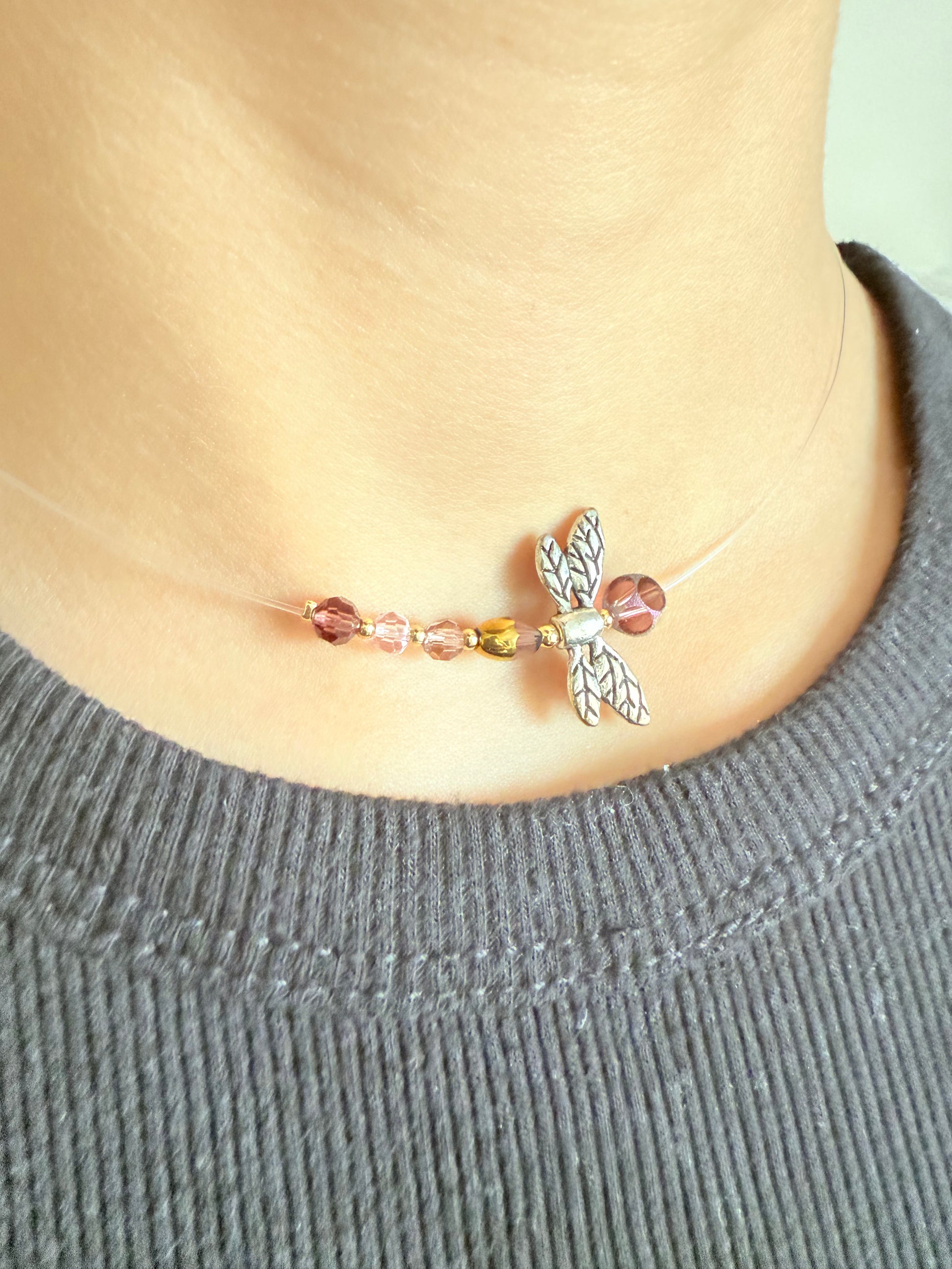 Gargantilla hecha a mano con hijo de nylon y cristales