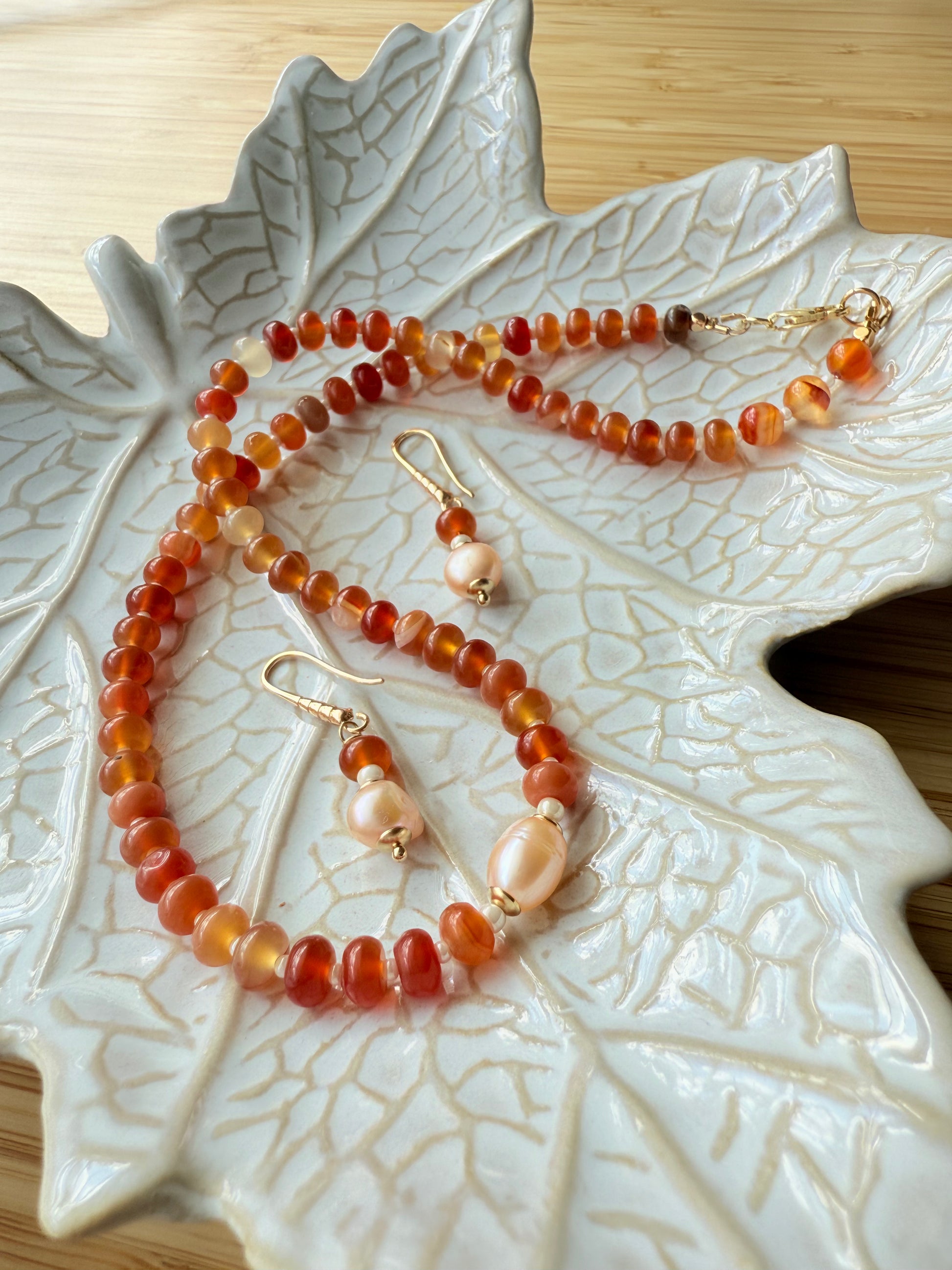 Conjunto hecho a mano con piedras semipreciosas y perlas cultivadas