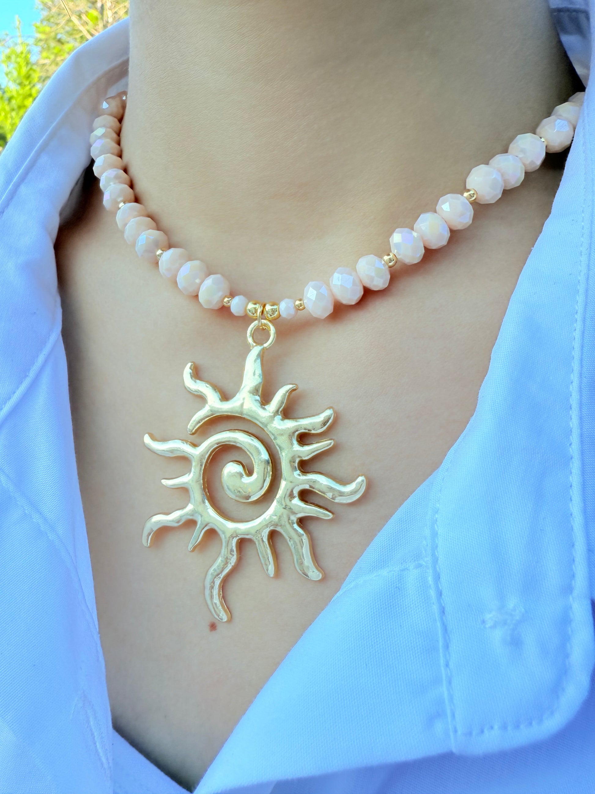 Gargantilla de cristales facetados con un efecto aurora boreal 8mm y balines con baño de oro